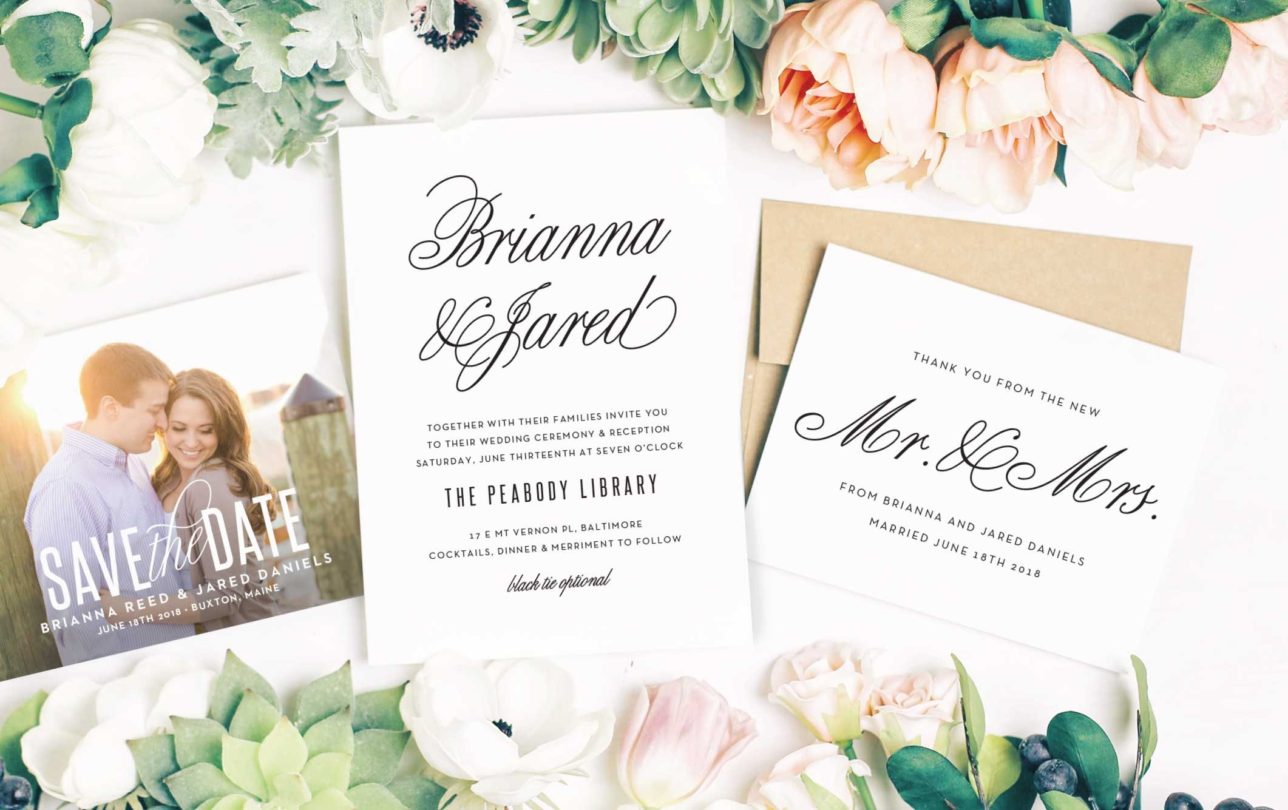 As wedding planners and event designers, one of our favorite details to take care of is pulling together a wedding stationery suite for our clients. From choosing fonts, to deciding on envelope liners, to finding the perfect colored cardstock – these are a few of our favorite things! So where do we direct our discerning brides who know exactly what they want? Enter Basic Invite! From the moment you get engaged to the wedding day,  you can’t beat our lovely friends over at Basic Invite. What’s so incredible about these invitation options, you ask? Let us count the ways!
