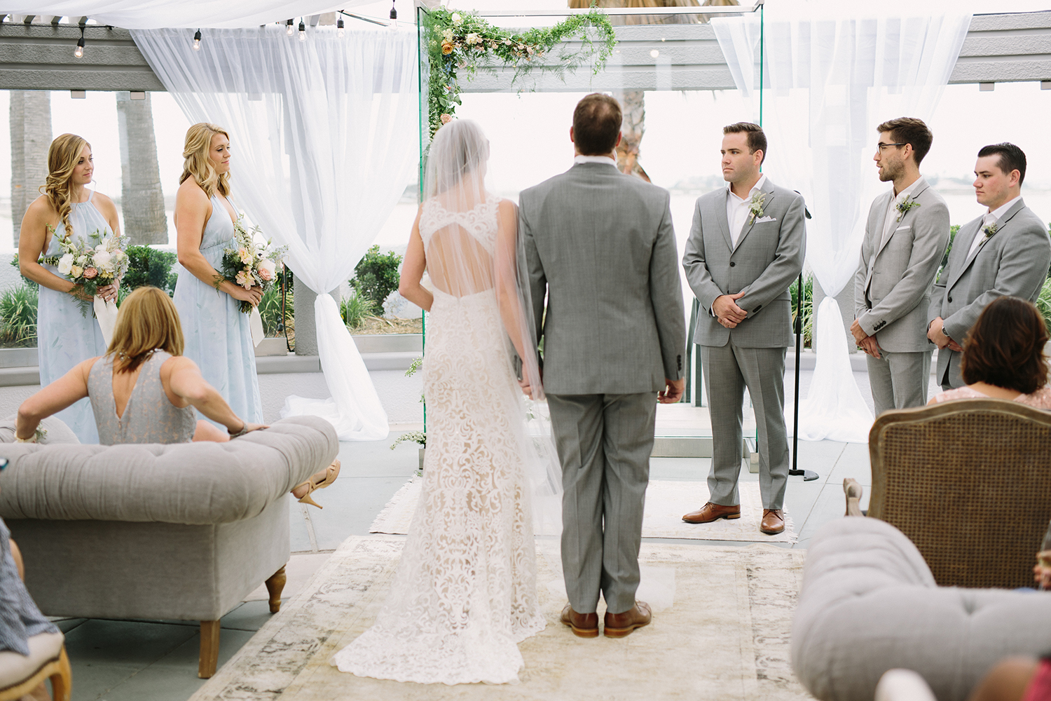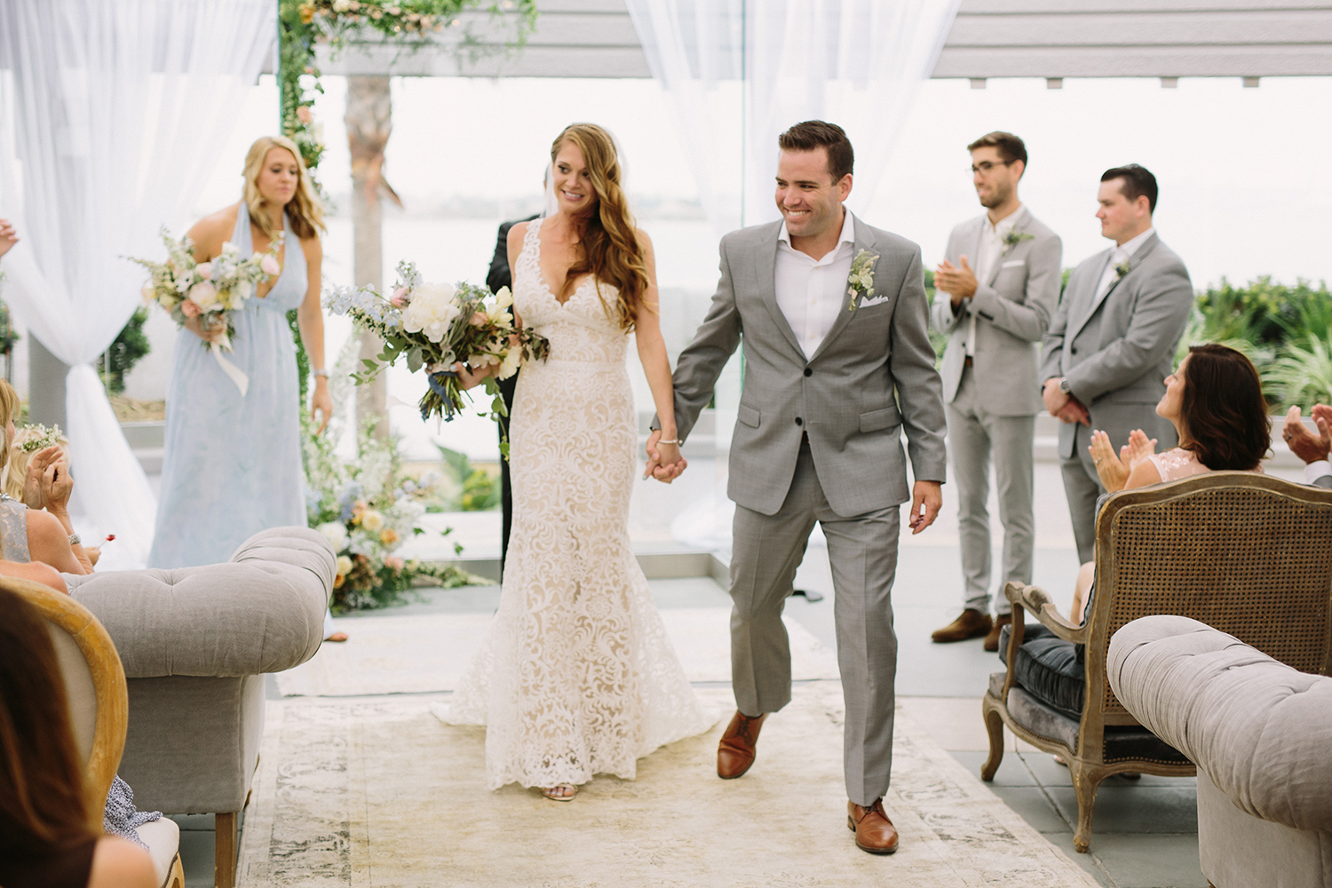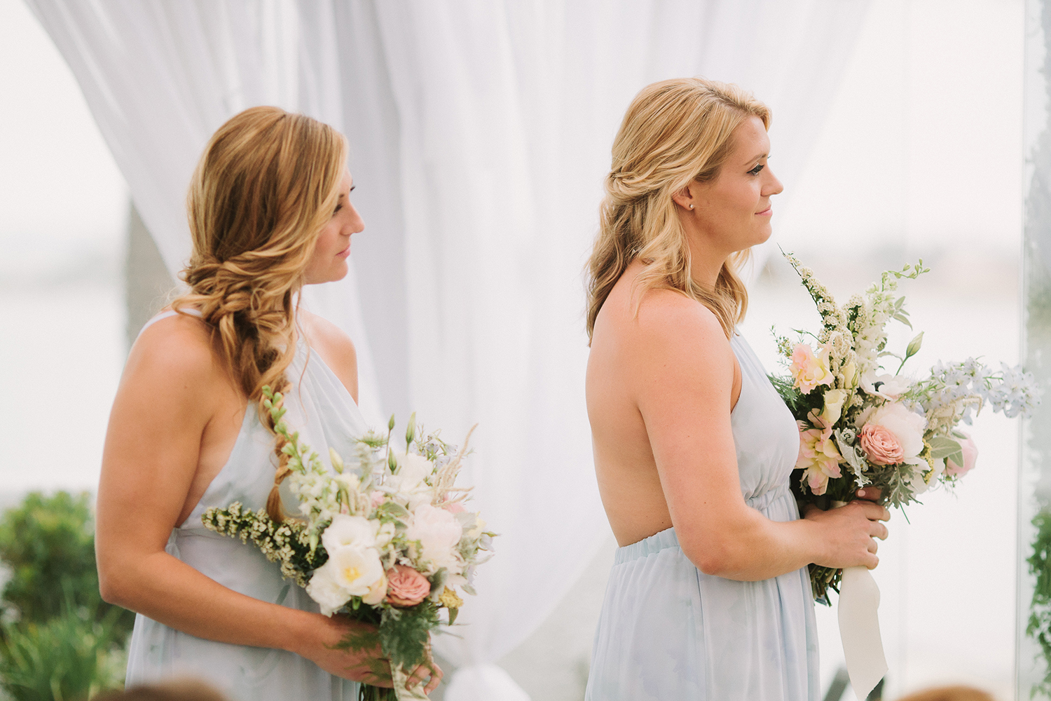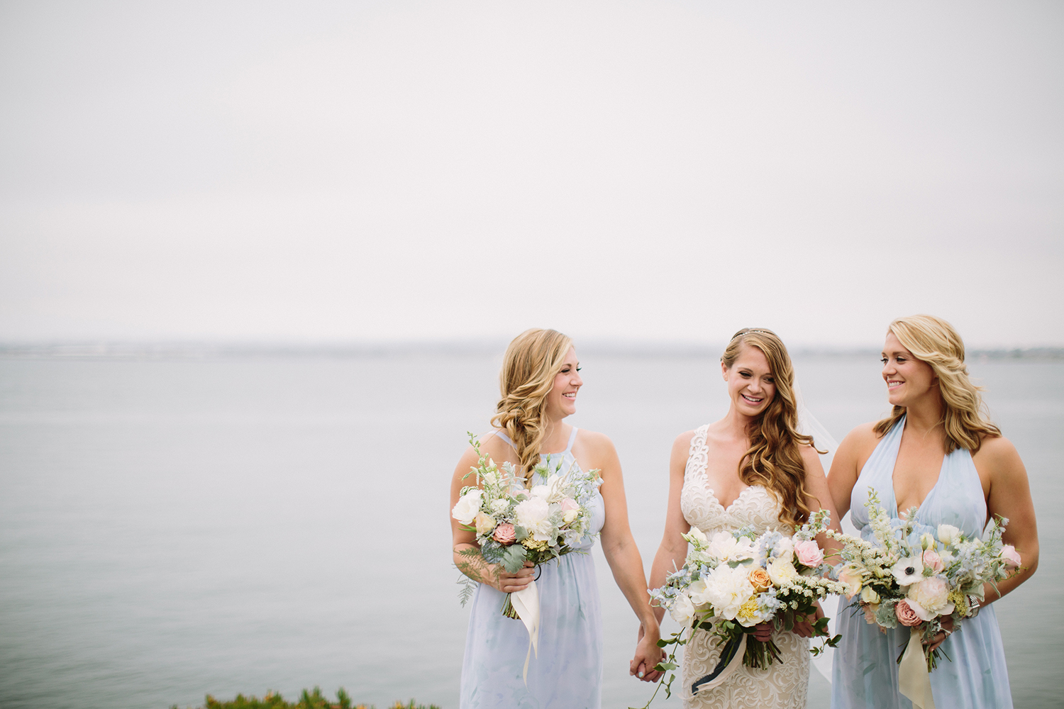 Where to even begin with this lovely Coronado stunner? Jenna + Andrew were dream clients that we miss working with every day. We had the honor to not just run the day of the wedding, but spend months planning and designing this pastel dream from top to bottom. Jenna + Andrew knew that they wanted an intimate and romantic beachside wedding and we transformed the Loews Coronado outdoor patio into an ethereal and elegant space. San Diego Party Rentals created a custom draped ceiling and strung bistro lights to illuminate the chiffon at night. Archive Rentals lended their gorgeous sofas, rustic tables and settees as alternative ceremony seating options facing the ocean. Tono + Co’s torn silk ribbon wrapped up ivory napkins on the table and guests were shown their seats with custom calligraphed sea glass pieces that complemented the lush florals. Layered Vintage killed it with organic and loose blooms that filled the tables and modern bouquets in the dreamiest of colors. Kevin Miso entertained guests all night with his casual, California style and the ceremony space was flipped for dancing late into the night. These two lovebirds were a dream come true and we can’t wait to continue sharing in their happiness for years to come!